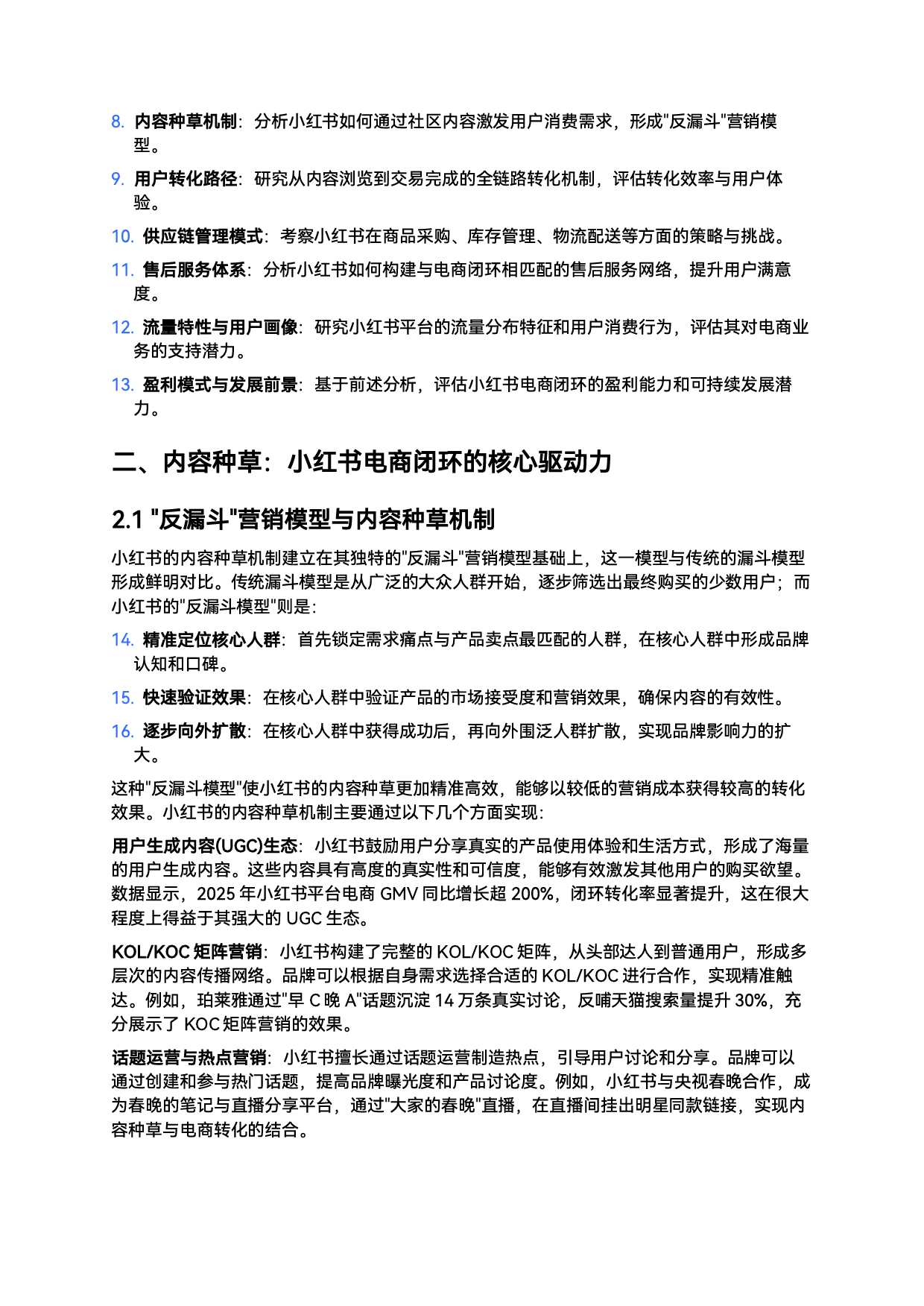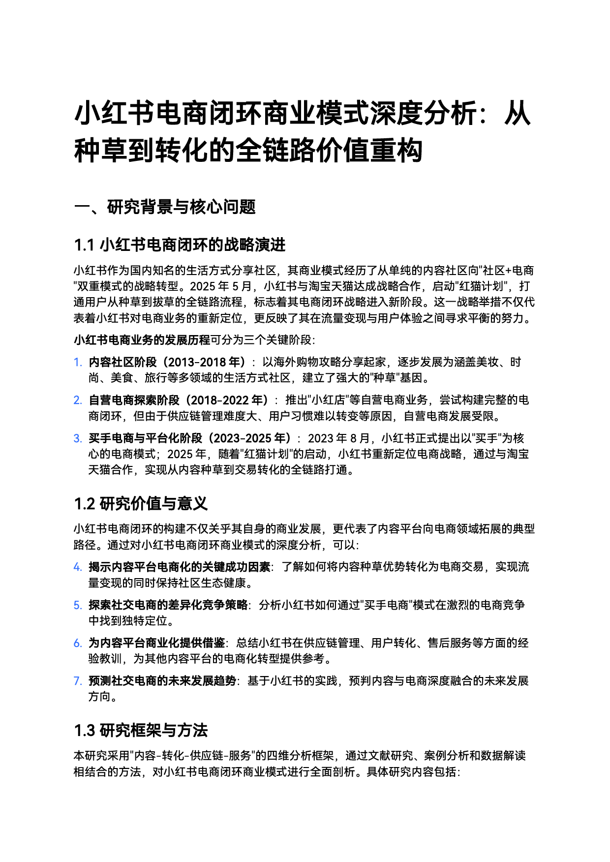 小红书电商闭环商业模式深度分析从种草到转化的全链路价值重构一研究背景与核心问题1.1小红书电商闭环的战略演进小红书作为国内知名的生活方式分享社区其商业模式经历了从单纯的内容社区向"社区+电商"双重模式的战略转型2025年5月小红书与淘宝天猫达成战略合作启动"红猫计划"打通用户从种草到拔草的全链路流程标志着其电商闭环战略进入新阶段这一战略举措不仅代表着小红书对电商业务的重新定位更反映了其在流量变现与用户体验之间寻求平衡的努力小红书电商业务的发展历程可分为三个关键阶段1.内容社区阶段2013-2018年以海外购物攻略分享起家逐步发展为涵盖美妆时尚美食旅行等多领域的生活方式社区建立了强大的"种草"基因2.自营电商探索阶段2018-2022年推出"小红店"等自营电商业务尝试构建完整的电商闭环但由于供应...
