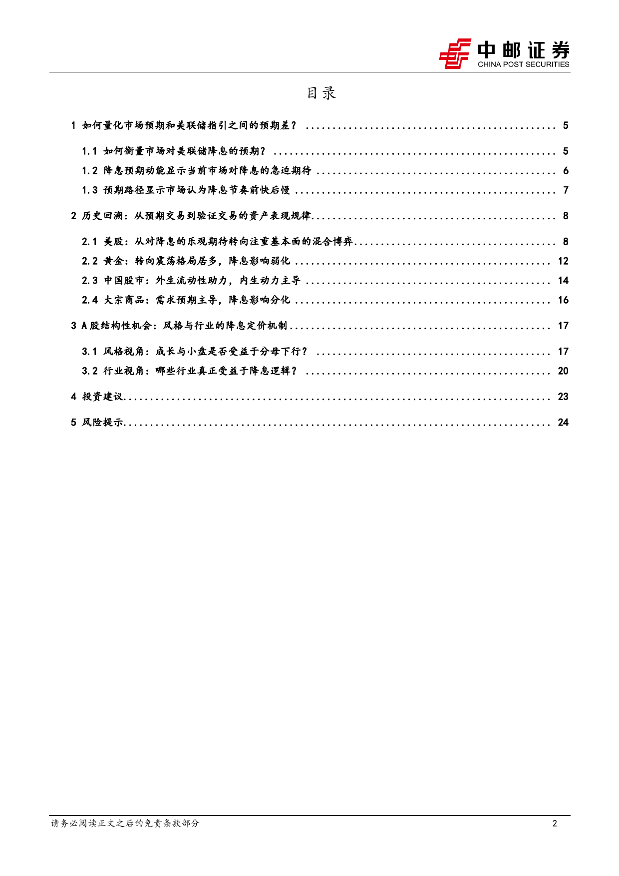 证券研究报告:策略报告发布时间:2025-09-25大盘指数策略观点400014000降息交易(1):降息之后的资产定价机制130001200030001100010000⚫投资要点200089000000美国联邦基金期货市场对美联储有着极强的降息预期。根据计算得到的预期利率变动,美国联邦基金期货市场的交易员们认为美联储上证指数深证成指将在未来6个月降息85bp,在未来12个月降息125bp。在美联储9月议息会议宣布降息25bp后,交易员们对未来美联储的政策路径预期并没有发生改变,此前的预期是6个月降息110bp和12个月降息80003000150bp,可以认为美联储的本次降息幅度完全在市场的预期内,并且7000美联储主席鲍威尔在会后的讲话也并未改变市场预期。按照目前的市2000场预期,2026年底的美国联邦基金利率将至少下行至3.0%,这一预600050001000期水平明...