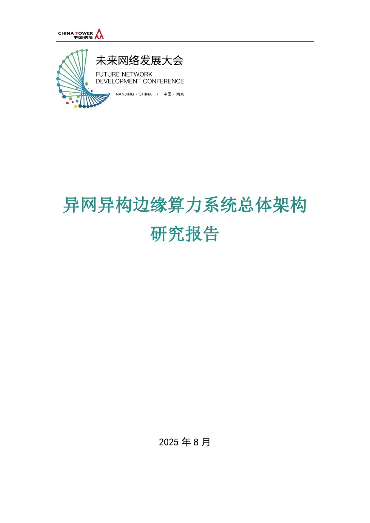 异网异构边缘算力系统总体架构研究报告2025年8月免责申明:行业报告资源群1.本资料来源于网络公开渠1.进群福利:进群即领万份行业研究、管理方案及其他道,版权归属版权方;学习资源,直接打包下载2.本资料仅限会员学习使用,2.每日分享:6+份行研精选、3个行业主题如他用请联系版权方;3.报告查找:群里直接咨询,免费协助查找4.严禁广告:仅限行业报告交流,禁止一切无关信息3.会员费用作为信息收集整理及运营之必须费用;4.如侵犯您的合法权益,请联系客服微信将及时删除。微信扫码长期有效微信扫码行研无忧知识星球行业与管理资源专业知识社群:每月分享10000+份行业研究报告、市场研究、企业运营及咨询管理方案等,涵盖科技、金融、教育、互联网、房地产、生物制药、医疗健康等全领域;是全网分享数量最多、...