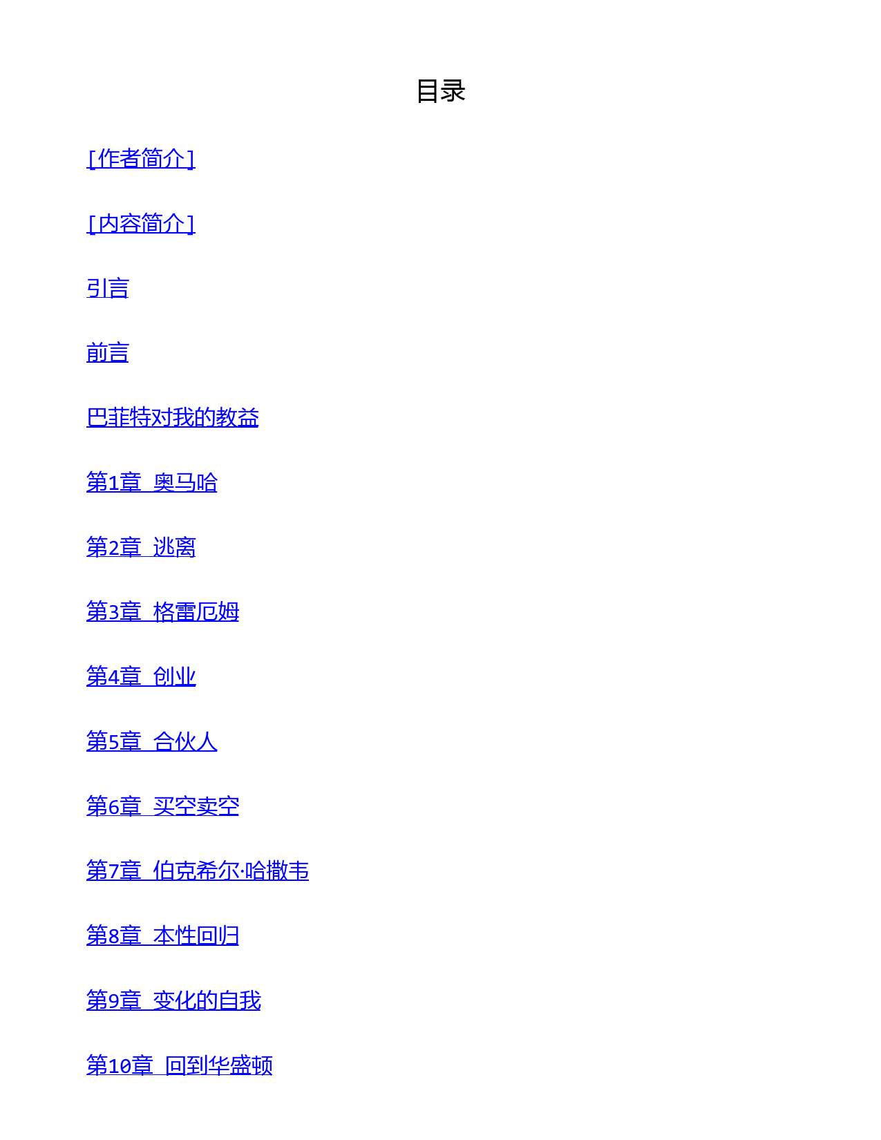目录[作者简介][内容简介]引言前言巴菲特对我的教益第1章奥马哈第2章逃离第3章格雷厄姆第4章创业第5章合伙人第6章买空卖空第7章伯克希尔·哈撒韦第8章本性回归第9章变化的自我第10章回到华盛顿第11章报业大王第12章伙伴,回来第13章地毯夫人第14章ABC的归宿第15章公开与私下第16章崩溃第17章关于飞镖第18章圣堂里的秘密第19章豪伊的伤感第20章恐钱症第21章证券大王第22章对所罗门的审判I危机Ⅱ战争时期Ⅲ痛苦Ⅳ初恋第23章巴菲特的公共电车本书由「ePUBw.COM」整理,ePUBw.COM提供最新最全的优质电子书下载!!![作者简介]罗杰·洛文斯坦,《华尔街日报》的资深财经记者,1989~1991年主管股票专栏《华尔街听闻》。目前撰写一新的金融专栏《固有价值》。现与家人居住在新泽西州西菲尔德。本书由「ePUBw.COM」整理...