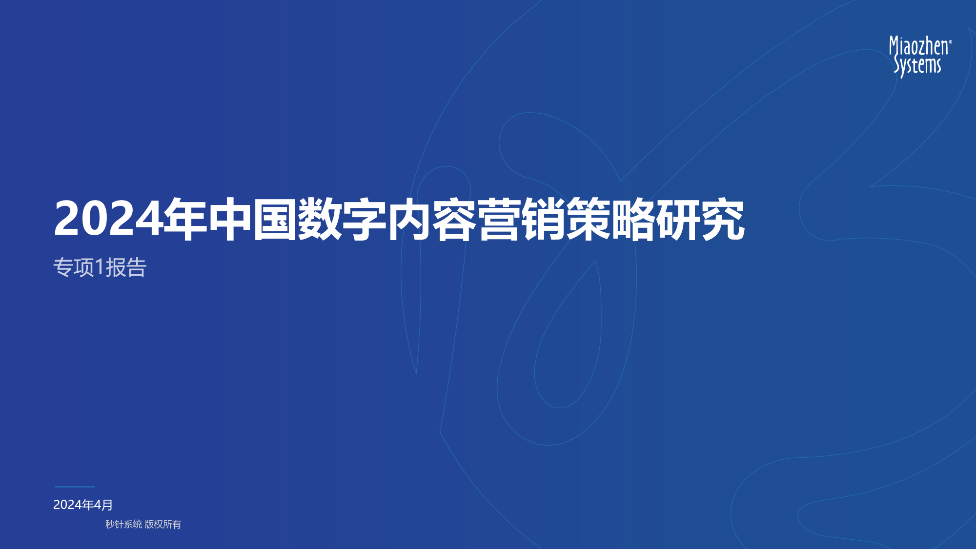 2024年中国数字内容营销策略研究2024年4月©2006-2024秒针系统版权所有免责申明:行业报告资源群本内容非原报告内容;1.进群福利:进群即领万份行业研究、管理方案及其他报告来源互联网公开数据;如侵权学习资源,直接打包下载请联系客服微信,第一时间清理;报告仅限社群个人学习,如需它用2.每日分享:6+份行研精选、3个行业主题请联系版权方;3.报告查找:群里直接咨询,免费协助查找如有其他疑问请联系微信。4.严禁广告:仅限行业报告交流,禁止一切无关信息微信扫码长期有效知识星球行业与管理资源专业知识社群:每月分享8000+份行业研究报告、商业计划、市场研究、企业运营及咨询管理方案等,涵盖科技、金融、教育、互联网、房地产、生物制药、医疗健康等;已成为投资、产业研究、企业运营、价值传播等工作助...