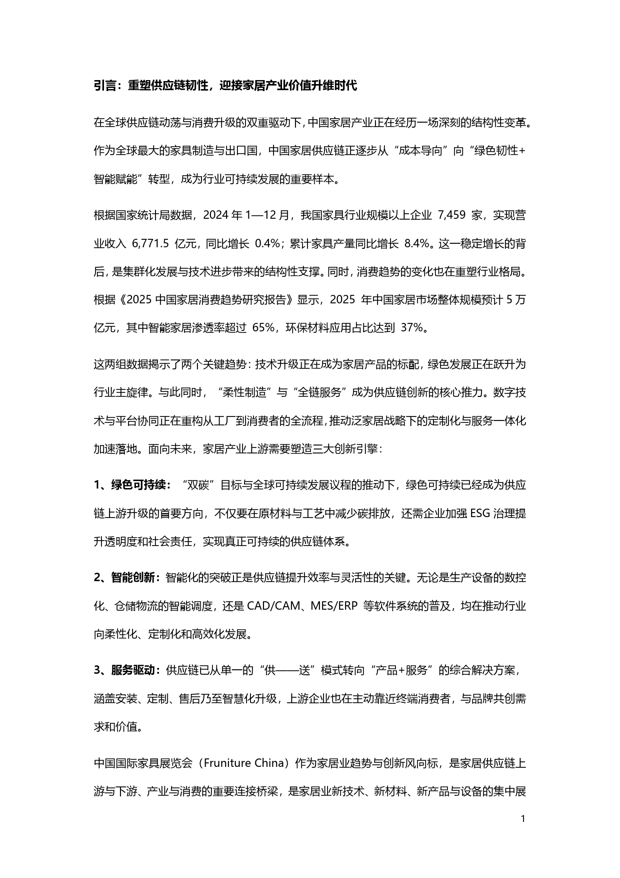 每日免费获取报告1、每日微信群内分享8+最新重磅报告;2、每日分享当日华尔街日报、金融时报;3、每周分享经济学人4、行研报告均为公开版,权利归原作者所有,小马财经仅分发做内部学习。扫一扫二维码关注公众号回复:研究报告加入“小马财经”微信群。引言:重塑供应链韧性,迎接家居产业价值升维时代在全球供应链动荡与消费升级的双重驱动下,中国家居产业正在经历一场深刻的结构性变革。作为全球最大的家具制造与出口国,中国家居供应链正逐步从“成本导向”向“绿色韧性+智能赋能”转型,成为行业可持续发展的重要样本。根据国家统计局数据,2024年1—12月,我国家具行业规模以上企业7,459家,实现营业收入6,771.5亿元,同比增长0.4%;累计家具产量同比增长8.4%。这一稳定增长的背后,是集群化发展与技术进步...