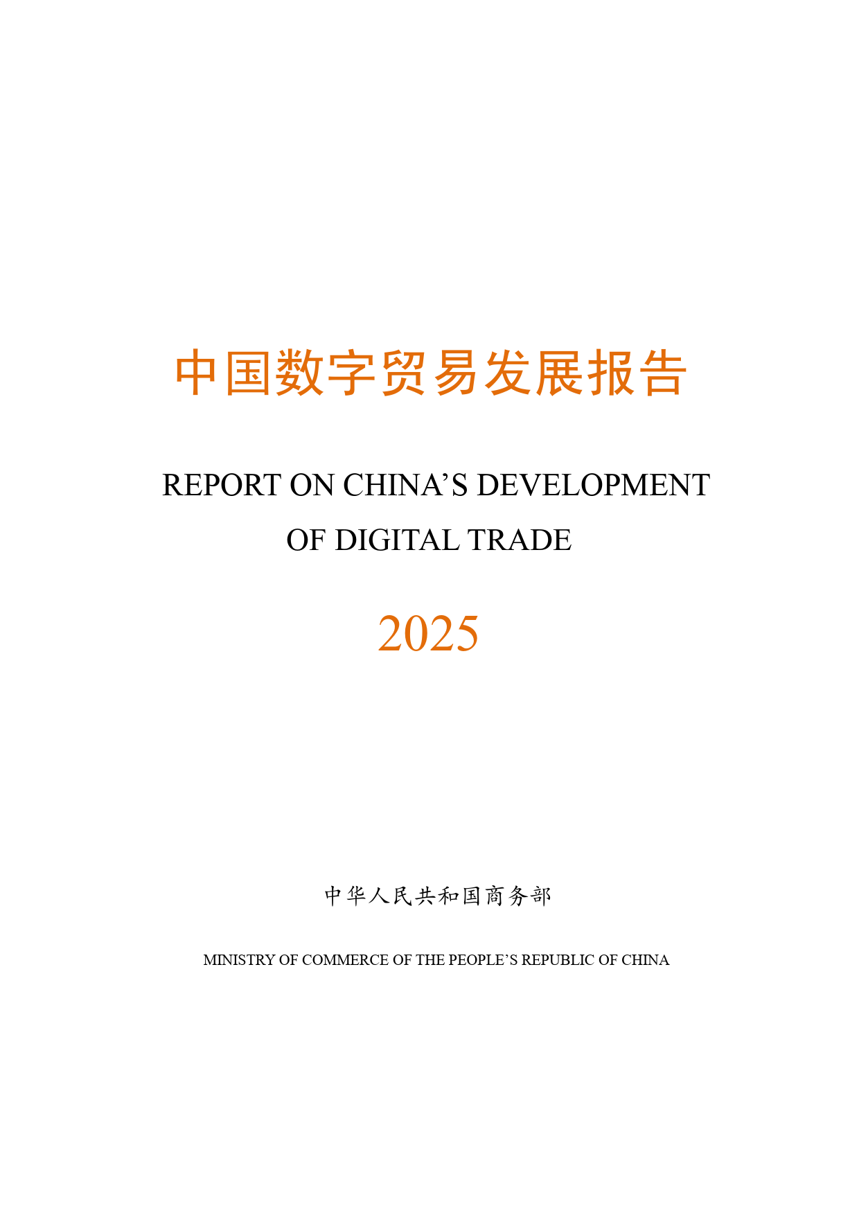 中国数字贸易发展报告REPORTONCHINA’SDEVELOPMENTOFDIGITALTRADE2025中华人民共和国商务部MINISTRYOFCOMMERCEOFTHEPEOPLE’SREPUBLICOFCHINA每日免费获取报告1、每日微信群内分享8+最新重磅报告;2、每日分享当日华尔街日报、金融时报;3、每周分享经济学人4、行研报告均为公开版,权利归原作者所有,小马财经仅分发做内部学习。扫一扫二维码关注公众号回复:研究报告加入“小马财经”微信群。目录综述篇:全球和中国数字贸易发展情况...........................................-1-全球数字贸易发展情况................................................................-3-中国数字贸易发展情况..............................................................-12-实践篇:部分代表性省市数字贸易创新发展实...