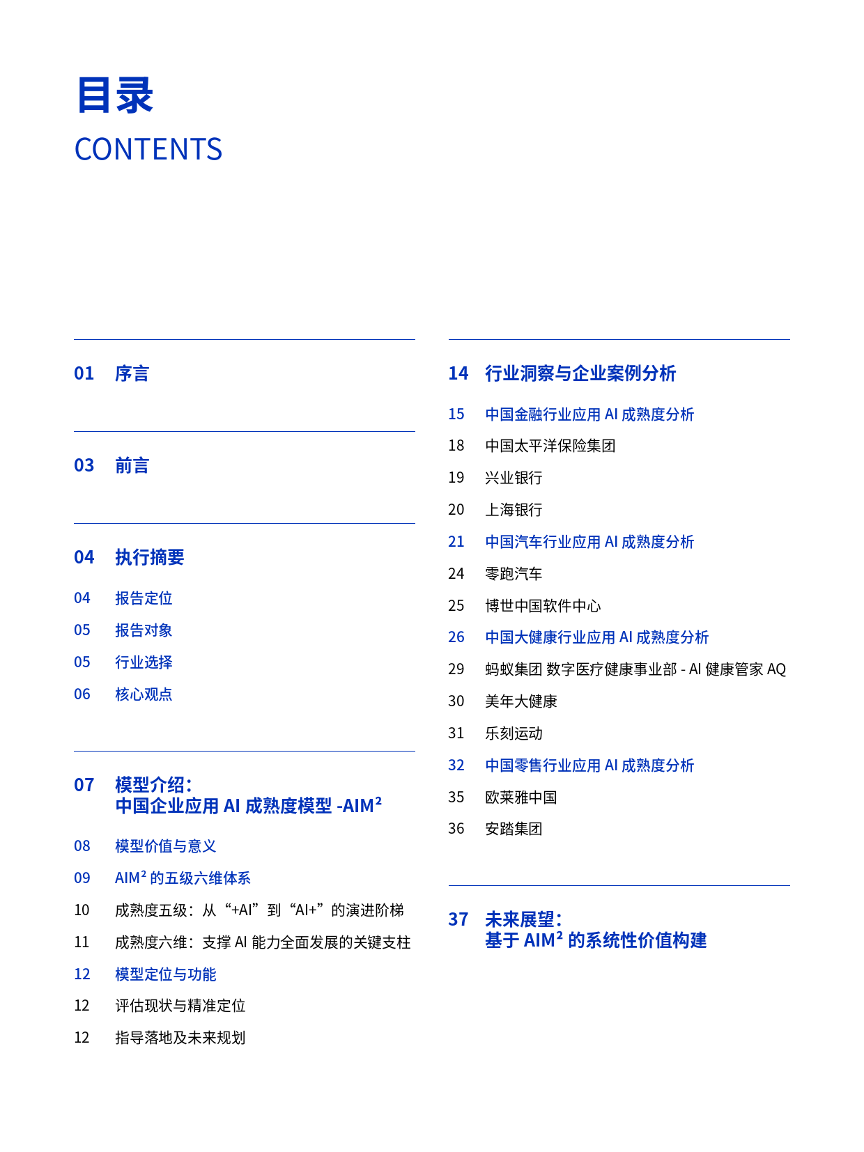 2025中国企业应用AI成熟度AIM2模型报告(简版)AIADOPTIONMATURITYMODELAIM2REPORTONCHINESEENTERPRISES免责申明:行业报告资源群1.本资料来源于网络公开渠1.进群福利:进群即领万份行业研究、管理方案及其他道,版权归属版权方;学习资源,直接打包下载2.本资料仅限会员学习使用,2.每日分享:6+份行研精选、3个行业主题如他用请联系版权方;3.报告查找:群里直接咨询,免费协助查找4.严禁广告:仅限行业报告交流,禁止一切无关信息3.会员费用作为信息收集整理及运营之必须费用;4.如侵犯您的合法权益,请联系客服微信将及时删除。微信扫码长期有效微信扫码行研无忧知识星球行业与管理资源专业知识社群:每月分享10000+份行业研究报告、市场研究、企业运营及咨询管理方案等,涵盖科技、金融、教育、互联网、房地...