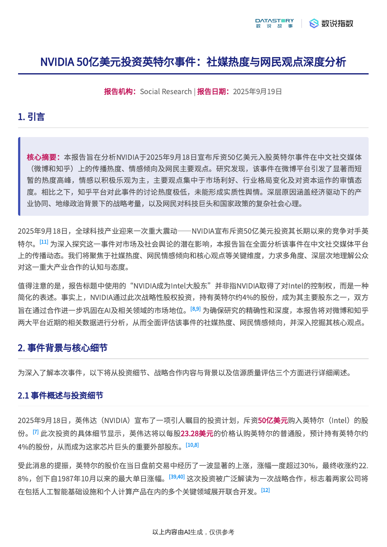 NVIDIA成为Intel大股东事件社交媒体热度及网民观点分析