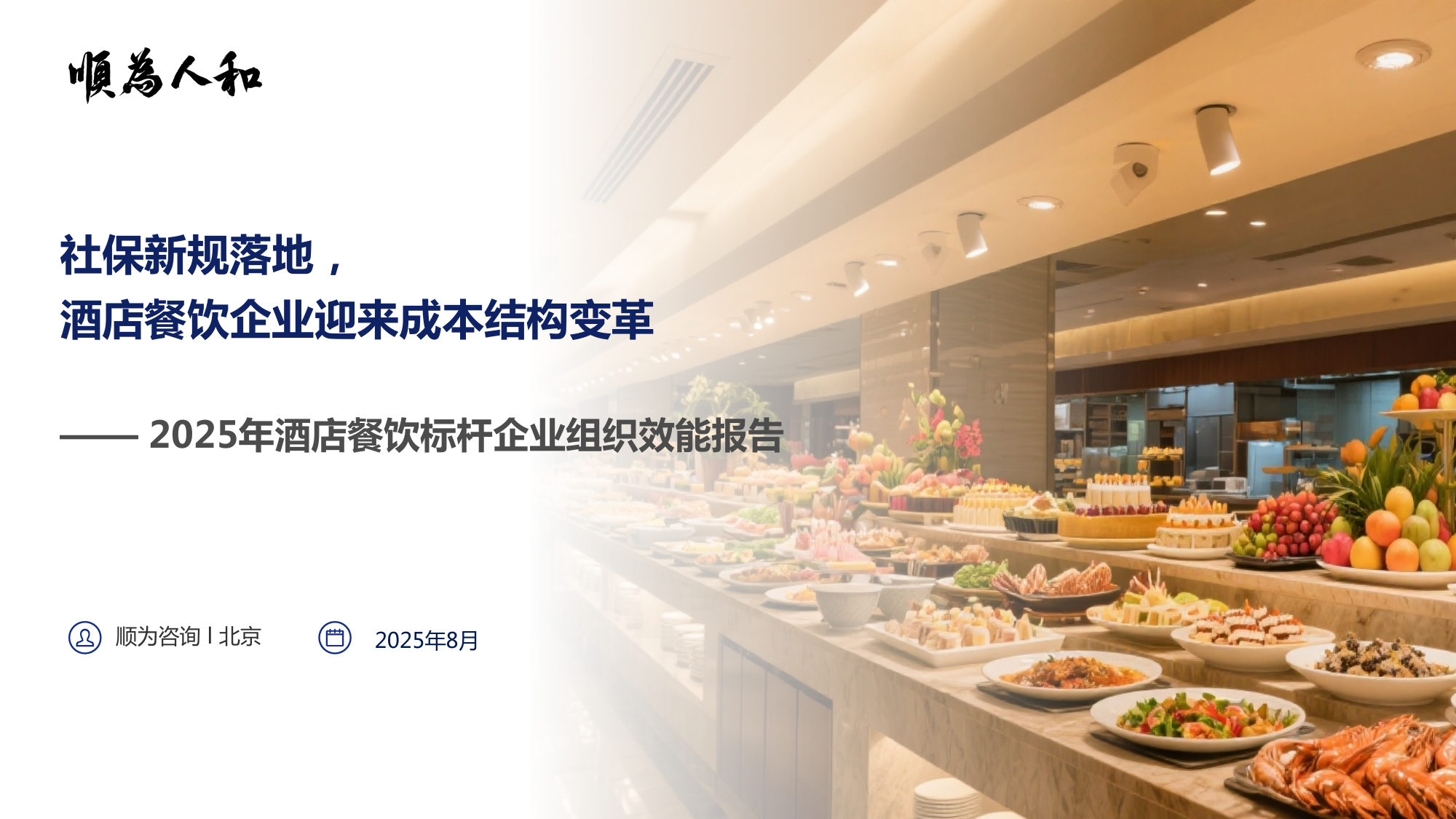 社保新规落地,酒店餐饮企业迎来成本结构变革——2025年酒店餐饮标杆企业组织效能报告顺为咨询l北京2025年8月免责申明:行业报告资源群1.本资料来源于网络公开渠1.进群福利:进群即领万份行业研究、管理方案及其他道,版权归属版权方;学习资源,直接打包下载2.本资料仅限会员学习使用,2.每日分享:6+份行研精选、3个行业主题如他用请联系版权方;3.报告查找:群里直接咨询,免费协助查找4.严禁广告:仅限行业报告交流,禁止一切无关信息3.会员费用作为信息收集整理及运营之必须费用;4.如侵犯您的合法权益,请联系客服微信将及时删除。微信扫码长期有效微信扫码行研无忧知识星球行业与管理资源专业知识社群:每月分享10000+份行业研究报告、市场研究、企业运营及咨询管理方案等,涵盖科技、金融、教育、互联网、...