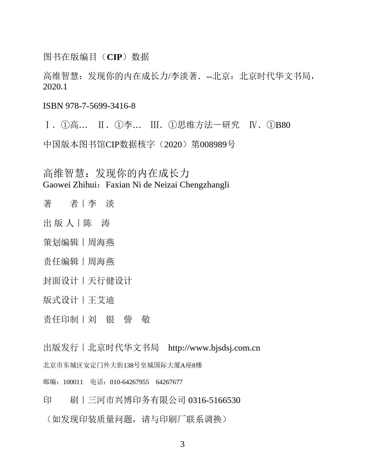 高维智慧发现你的内在成长力李淡著北京时代华文书局2图书在版编目(CIP)数据高维智慧:发现你的内在成长力/李淡著.--北京:北京时代华文书局,2020.1ISBN978-7-5699-3416-8Ⅰ.①高…Ⅱ.①李…Ⅲ.①思维方法-研究Ⅳ.①B80中国版本图书馆CIP数据核字(2020)第008989号高维智慧:发现你的内在成长力GaoweiZhihui:FaxianNideNeizaiChengzhangli著者|李淡出版人|陈涛策划编辑|周海燕责任编辑|周海燕封面设计|天行健设计版式设计|王艾迪责任印制|刘银訾敬出版发行|北京时代华文书局http://www.bjsdsj.com.cn北京市东城区安定门外大街138号皇城国际大厦A座8楼邮编:100011电话:010-6426795564267677印刷|三河市兴博印务有限公司0316-5166530(如发现印装质量问题,请与印刷厂联系调换)3开本|710mm×...