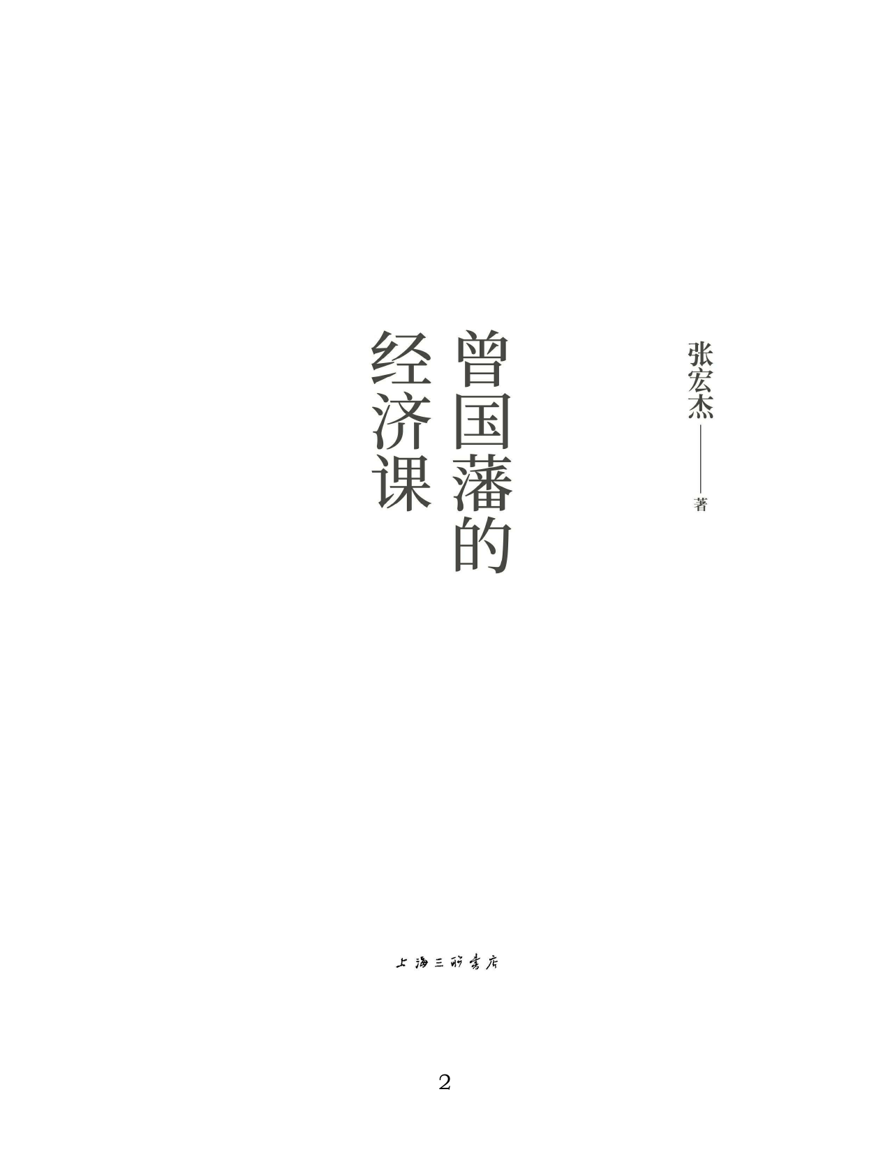 2图书在版编目(CIP)数据曾国藩的经济课/张宏杰著.—上海:上海三联书店,2020.1ISBN978-7-5426-6789-2Ⅰ.①曾…Ⅱ.①张…Ⅲ.①曾国藩(1811-1872)-经济思想-研究Ⅳ.①F092.2中国版本图书馆CIP数据核字(2019)第241551号曾国藩的经济课张宏杰著出品人/一航选题策划/航一文化出版统筹/康天毅责任编辑/殷亚平特约编辑/康天毅封面设计/熊琼版式设计/林晓青监制/姚军责任校对/张大伟出版发行/3(200030)上海市徐汇区漕溪北路331号A座6楼邮购电话/021-22895540印刷/天津旭丰源印刷有限公司版次/2020年1月第1版印次/2020年1月第1次印刷开本/700mm×980mm1/16印张/24.5字数/450千字书号/ISBN978-7-5426-6789-2/F·791定价/68.00元如发现印装质量问题,影响阅读,请与印刷厂联系调换。4自...