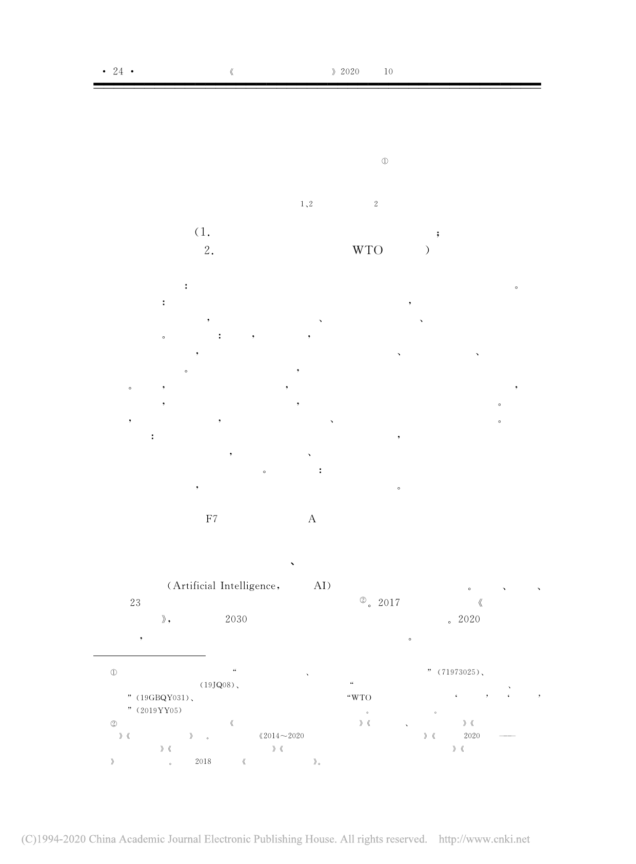 ·24·《数量经济技术经济研究》2020年第10期人工智能对制造业价值链分工的影响效应研究①刘斌1、2潘彤2(1.对外经济贸易大学国家对外开放研究院;2.对外经济贸易大学中国WTO研究院)研究目标:利用工业机器人数据深度解析人工智能对全球价值链的影响效应。研究方法:通过人工智能与全球价值链行业层面数据的对接,构建人工智能与全球价值链的计量模型,运用普通最小二乘法、两阶段最小二乘法、交互项方法等进行经验研究。研究发现:首先,总体而言,人工智能提升了一国行业全球价值链参与程度与分工地位,这一促进效用主要是通过降低贸易成本、促进技术创新、优化资源配置实现的。与资本配置效率相...