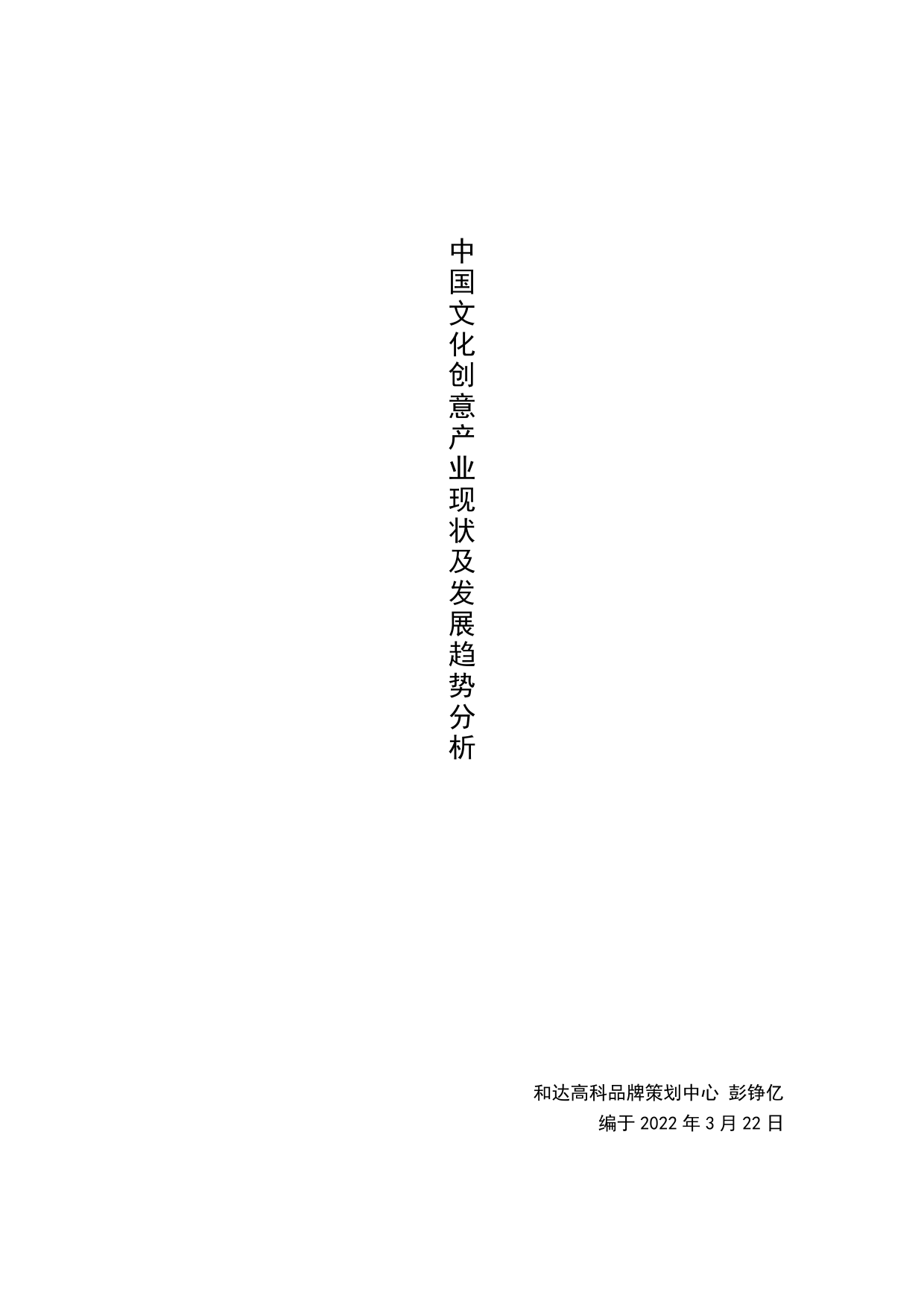 中国文化创意产业现状及发展趋势分析和达高科品牌策划中心彭铮亿编于2022年3月22日免责申明:合作与沟通,请联系客服1.本附加与原报告无关;2.本资料来源互联网公开数据;3.本资料在“行业报告资源群”和“知识星球行业与管理资源”均免费获取;4.本资料仅限社群内部学习,如需它用请联系版权方客服微信客服微信行业报告资源群1.进群即领福利《报告与资源合编》,内有近百行业、万余份行研、管理及其他学习资源免费下载;2.每日分享学习最新6+份精选行研资料;3.群友咨询,群主免费提供相关行业报告。微信扫码,长期有效知识星球行业与管理资源微信扫码,行研无忧知识星球行业与管理资源是投资、产业研究、运营管理、价值传播等专业知识库,已成为产业生态圈、企业经营者及数据研究者的智慧工具。知识星球行业与管...