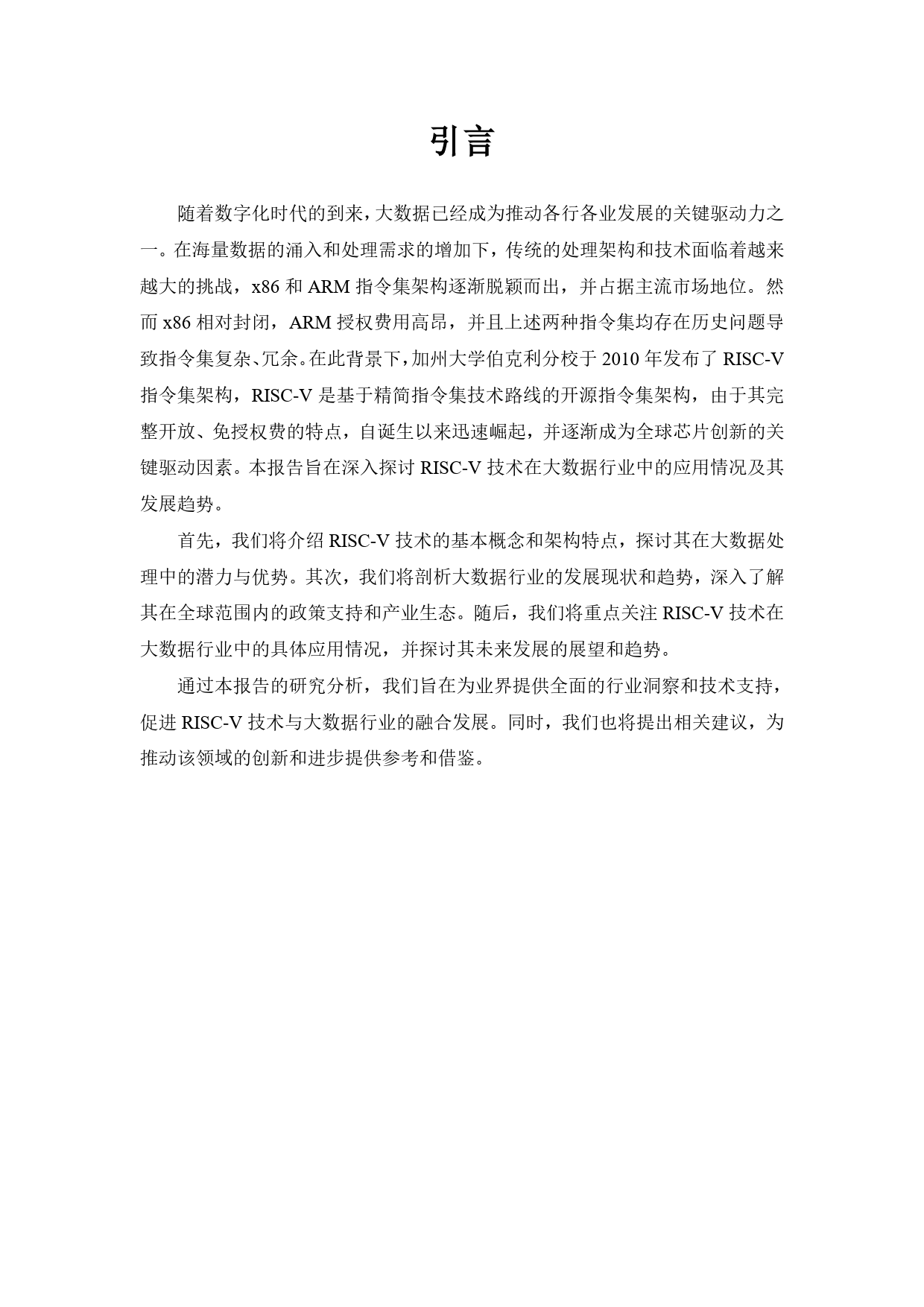 RISC-V大数据行业发展调研报告中国电信股份有限公司研究院二零二五年四月免责申明:行业报告资源群1.本资料来源于网络公开渠1.进群福利:进群即领万份行业研究、管理方案及其他道,版权归属版权方;学习资源,直接打包下载2.本资料仅限会员学习使用,2.每日分享:6+份行研精选、3个行业主题如他用请联系版权方;3.报告查找:群里直接咨询,免费协助查找4.严禁广告:仅限行业报告交流,禁止一切无关信息3.会员费用作为信息收集整理及运营之必须费用;4.如侵犯您的合法权益,请联系客服微信将及时删除。微信扫码长期有效微信扫码行研无忧知识星球行业与管理资源专业知识社群:每月分享10000+份行业研究报告、市场研究、企业运营及咨询管理方案等,涵盖科技、金融、教育、互联网、房地产、生物制药、医疗健康等全领域...