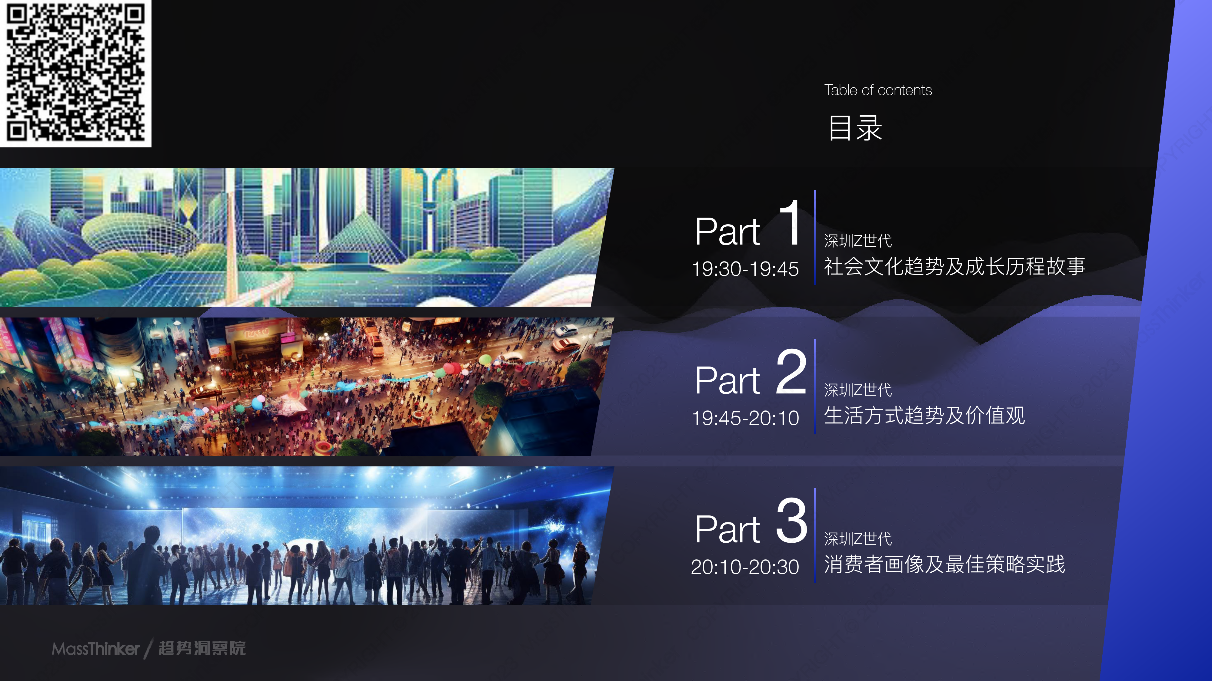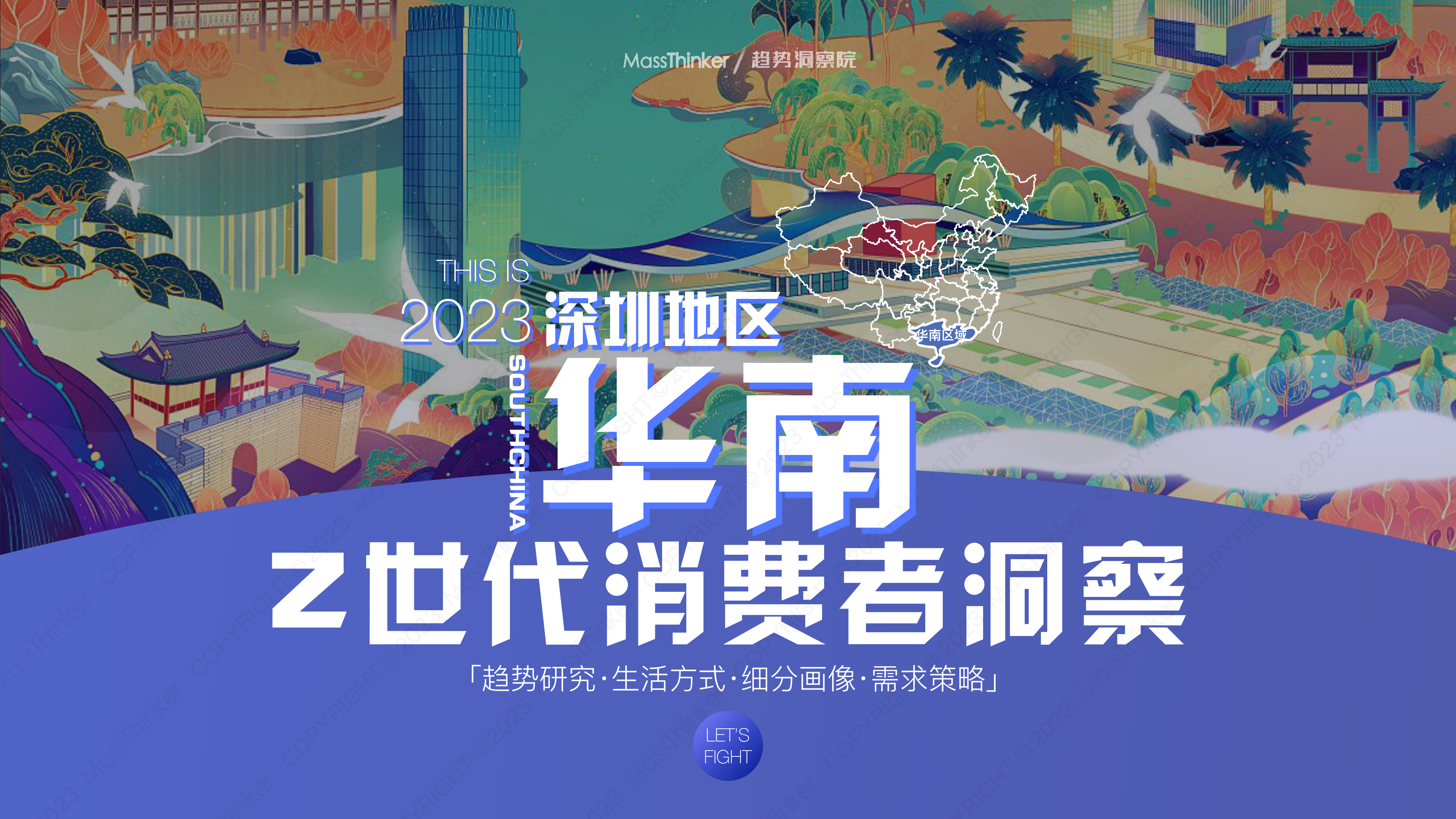 THISIS2023深圳地区华南区域SOUTHCHINA华南Z世代消费者洞察「趋势研究·⽣活⽅式·细分画像·需求策略」LET’SFIGHT1免费每日微信群内分享7+最新重磅报告;获取每日分享当日华尔街日报、金融时报;报告行研报告均为公开版,权利归原作者所有,起点财经仅分发做内部学习。扫⼀一扫⼆二维码关注公号回复:“研究报告”加⼊入“起点财经”微信群Tableofcontents⽬录Part119:30-19:45深圳Z世代社会⽂化趋势及成⻓历程故事Part219:45-20:10深圳Z世代⽣活⽅式趋势及价值观Part320:10-20:30深圳Z世代消费者画像及最佳策略实践2Part1深圳Z世代社会⽂化趋势及成⻓历程故事3•GDP3.24万亿,经济总量全国第三2020深圳常住⼈⼝⾦字塔•常住⼈⼝1768.16万85+实际管理⼈⼝2023.8万80~84•2022年⼈⼝净流⼊总量排名榜NO.2•202295后⼈...
