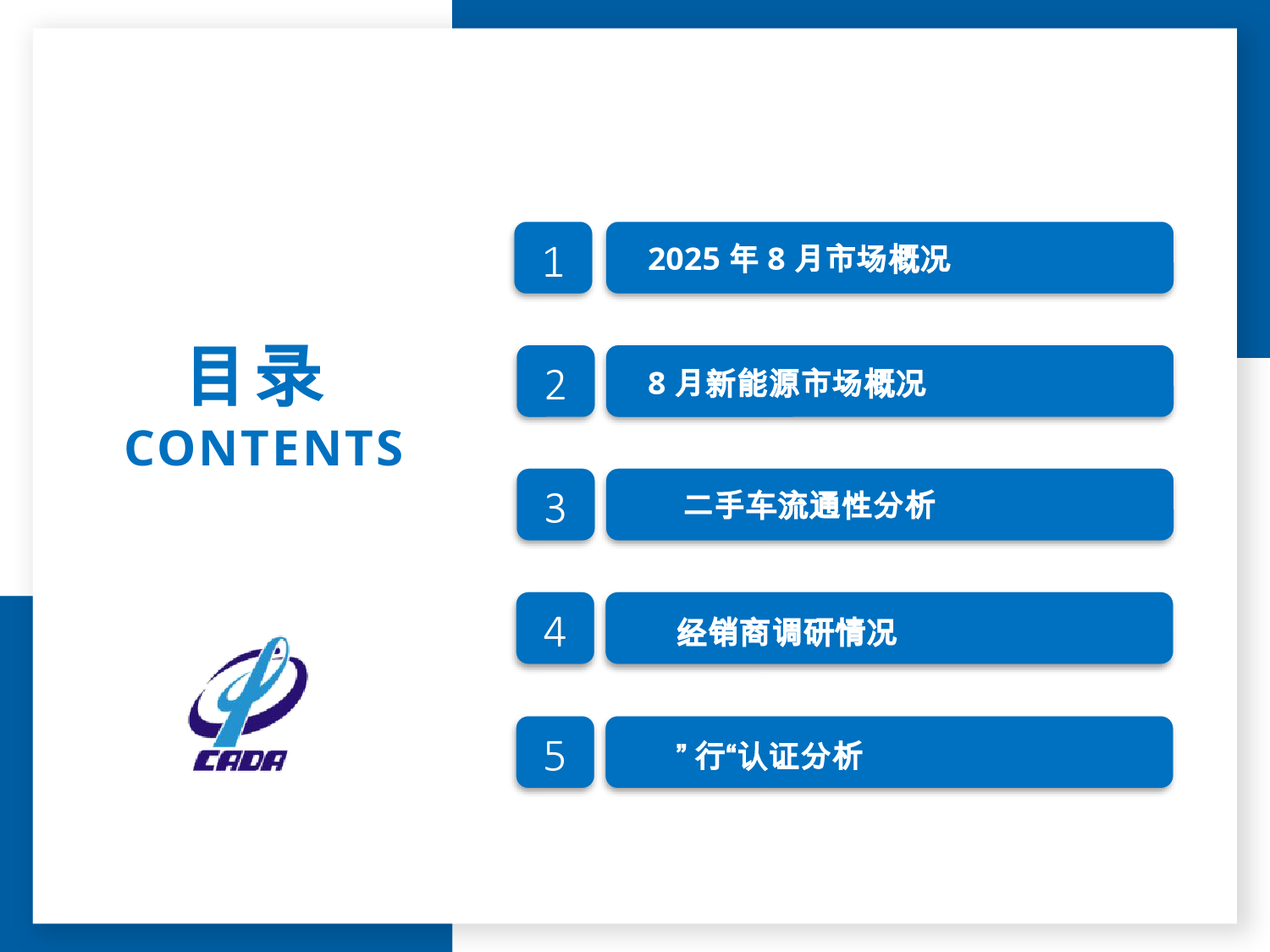 2025年8月全国二手车市场深度分析每日免费获取报告1、每日微信群内分享8+最新重磅报告;2、每日分享当日华尔街日报、金融时报;3、每周分享经济学人4、行研报告均为公开版,权利归原作者所有,小马财经仅分发做内部学习。扫一扫二维码关注公众号回复:研究报告加入“小马财经”微信群。12025年8月市场概况目录28月新能源市场概况CONTENTS3二手车流通性分析4经销商调研情况5”行“认证分析012025年8月市场概况2025年8月二手车市场月度交易趋势2024-2025年全国二手车月度交易量变化趋势(单位:万辆,%)2025年交易量2024年交易量2025月度同比2024月度同比200.035.26%190.029.12%14.68%40.00%180.030.00%160.0178.5620.00%140.010.00%120.0171.150.00%100.0-10.00%80.0165.84-20.00%60.0-30.00%156.61-13.45%170.740...