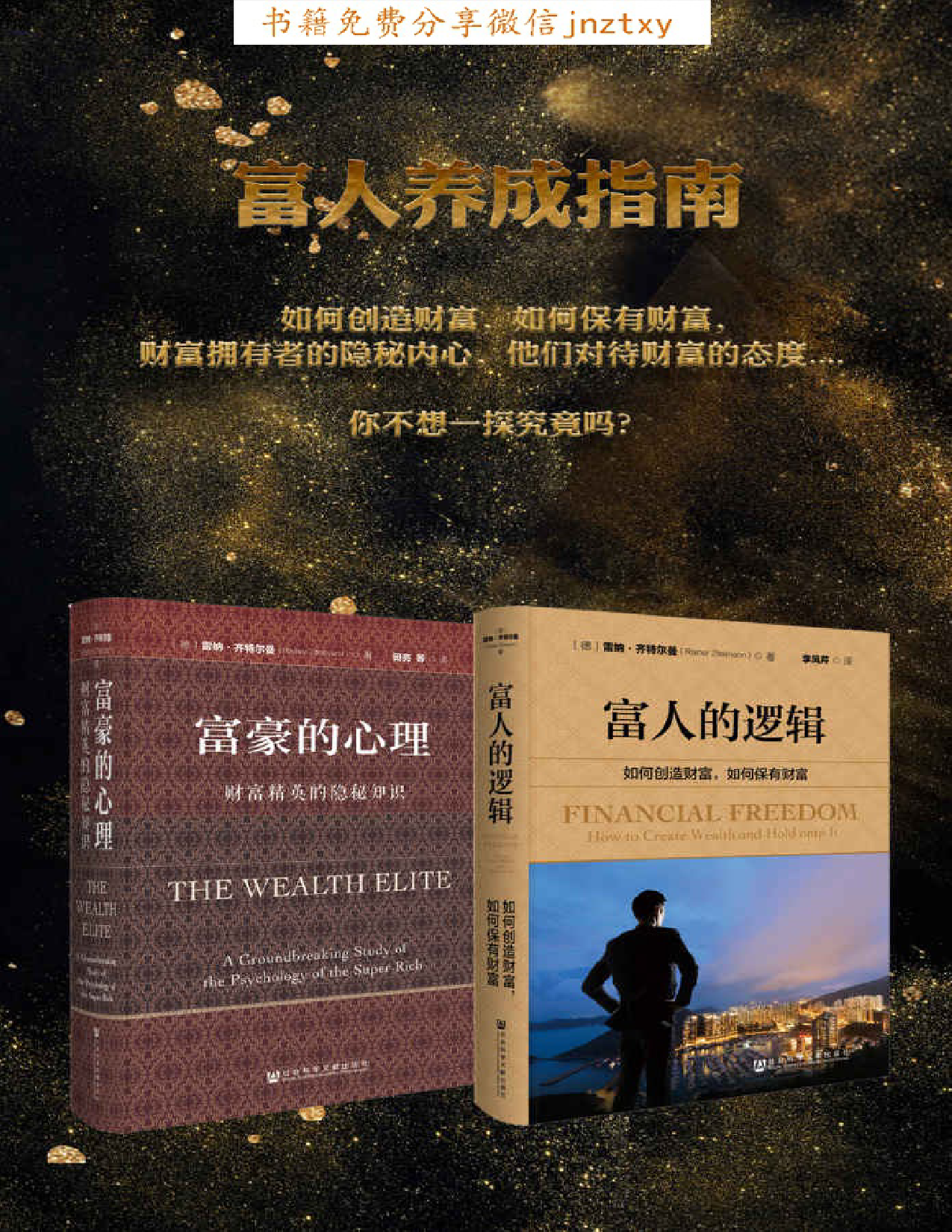 总目录富人的逻辑:如何创造财富,如何保有财富富豪的心理:财富精英的隐秘知识作者简介〔德〕雷纳·齐特尔曼博士(Dr.RainerZitelmann)德国《世界报》(DieWelt)高级主编,曾在柏林自由大学社会科学研究中央研究院(CentralInstituteforSocialScienceResearch)工作。过去十几年来,齐特尔曼一直是德国领先的地产行业传播顾问公司所有人。他还是一名成功的地产市场投资人,是17本著作的作者或主编,他的《敢于不同:成功人士和你我之分》(2011)已被翻译成六种语言出版。文前辅文FinacialFreedom-HowtoCreateWealthandHoldontoIt©2015Dr.RainerZitelmann,AllRightsReservedFirstpublishedinGermany2015underthetitle-Reichwerdenundbleiben/RainerZitelmannbyFinanzbuchVerlag,Munich,GermanyTranslatedin...